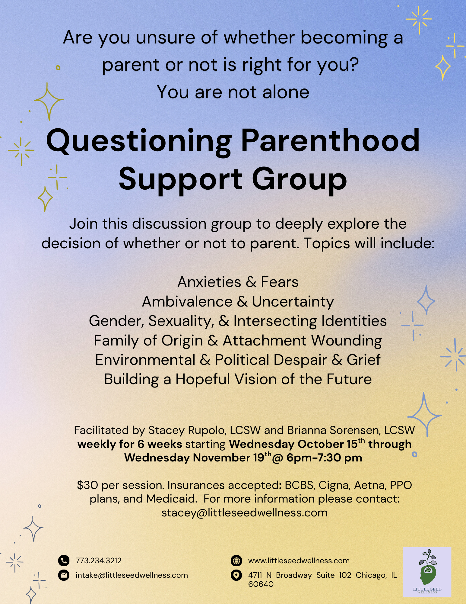 We believe that healing happens together with others, so we have curated group offerings for our community. If you are interested in a group and do not see it here, please reach out to us at intake@littleseedwellness.com